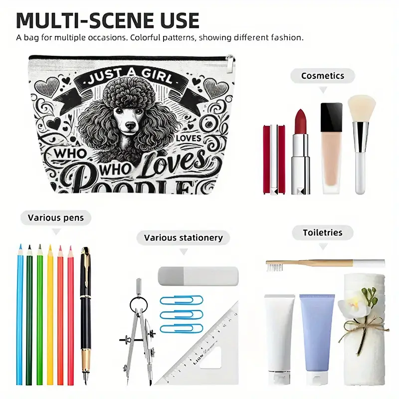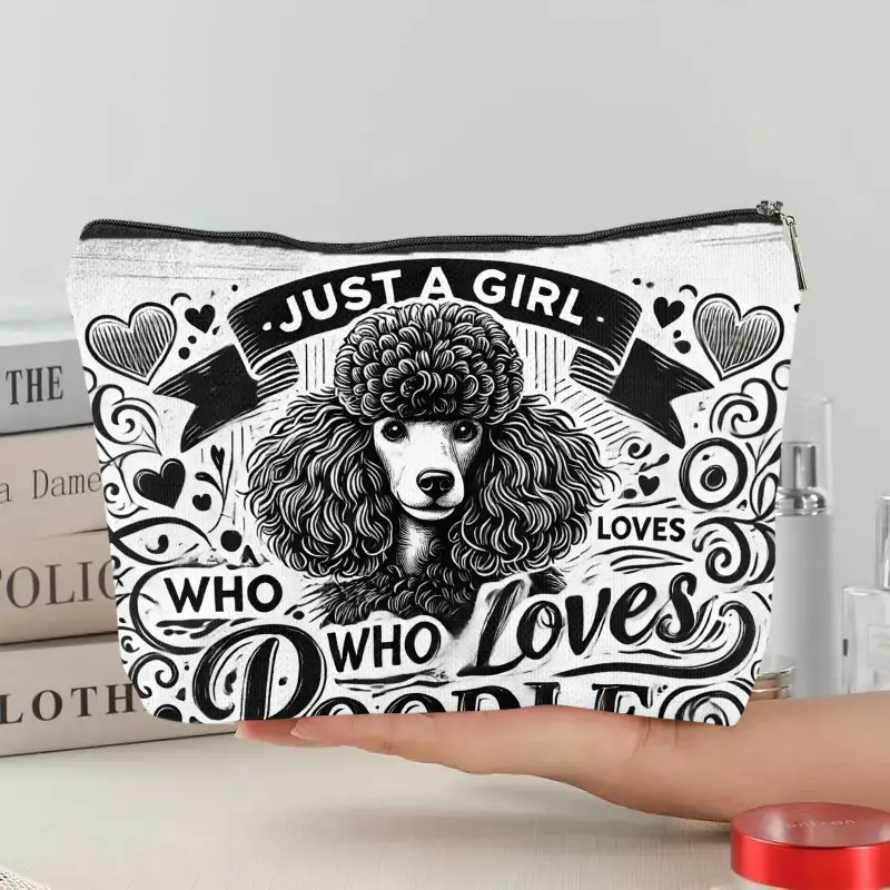Poodle Lover's Linen Makeup Bag