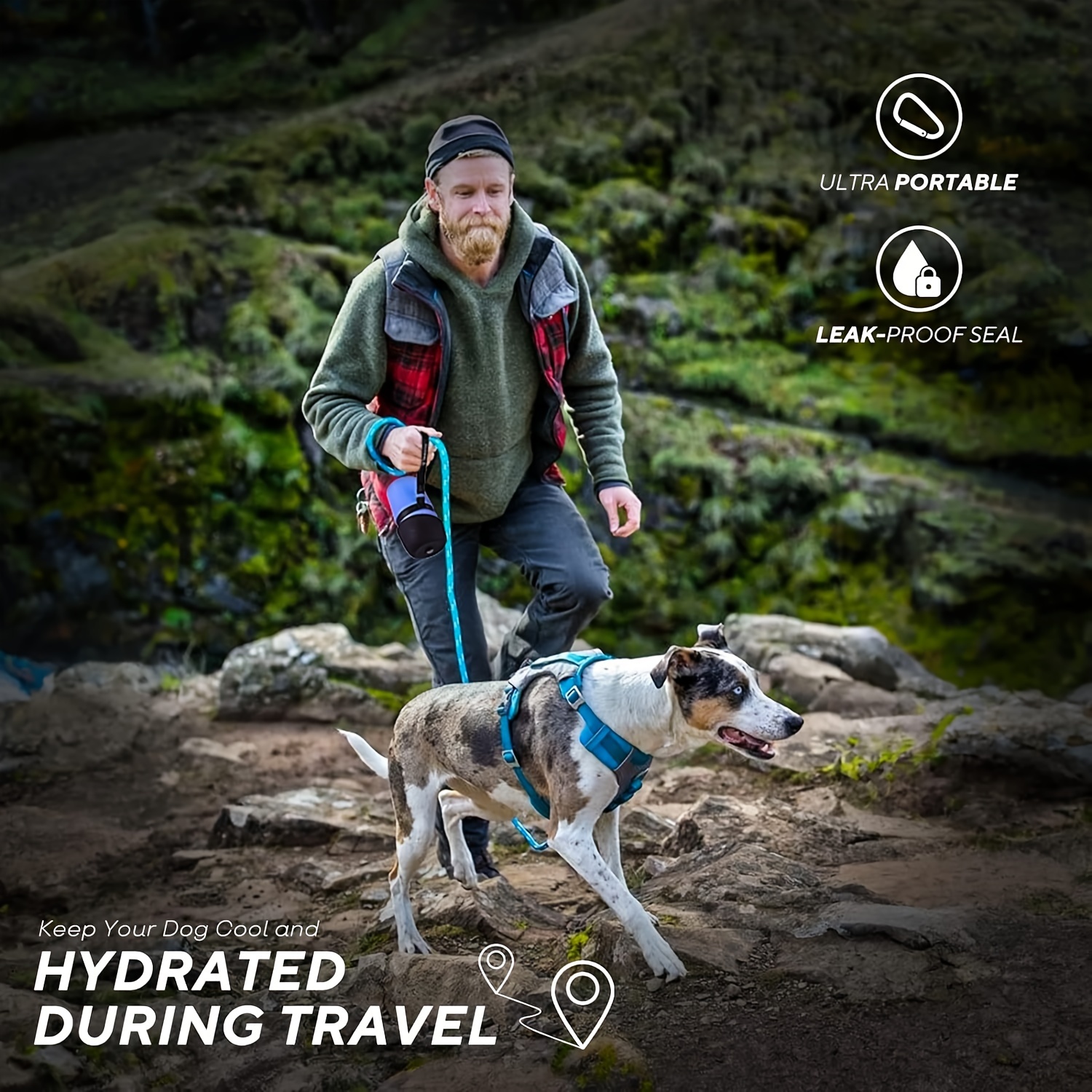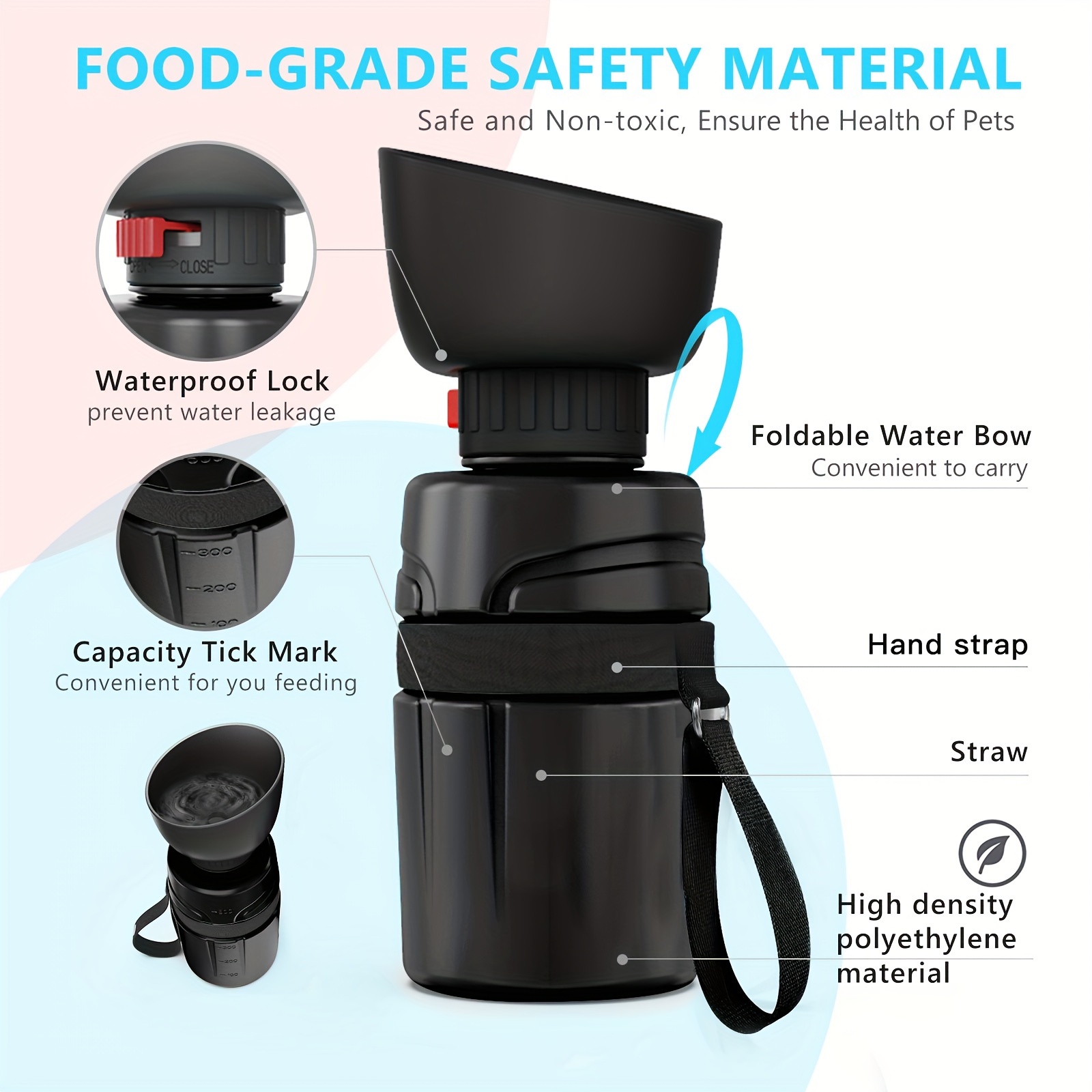 21oz Portable Dog Water Bottle With Bowl Dispenser BPA Free