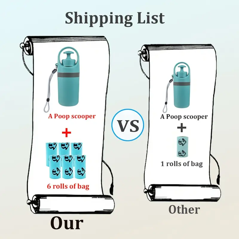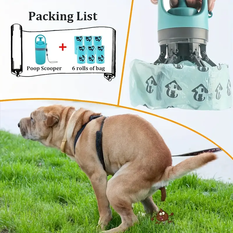 Poop Picker Upper with 6 Rolls of Plastic Bags